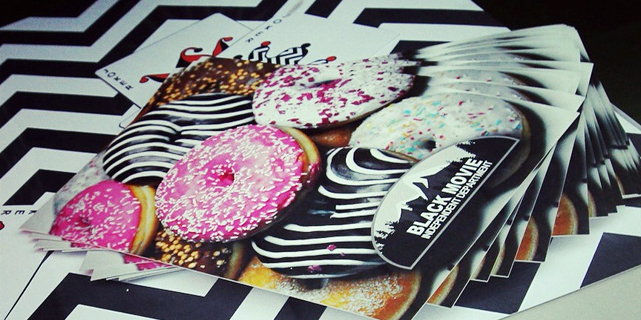 The installation consisted in the impulse of the atmosphere idea for the festival’s partners and crew, in the design of A5 postcards (donuts), tee-shirts and A1 posters (wood, donuts), cinema screensavers, accessories, flags and stickers inspired by Twin-Peaks Police Department’s logo, in the construction of the Black Lodge and Twin-Peaks portraits of the crew.