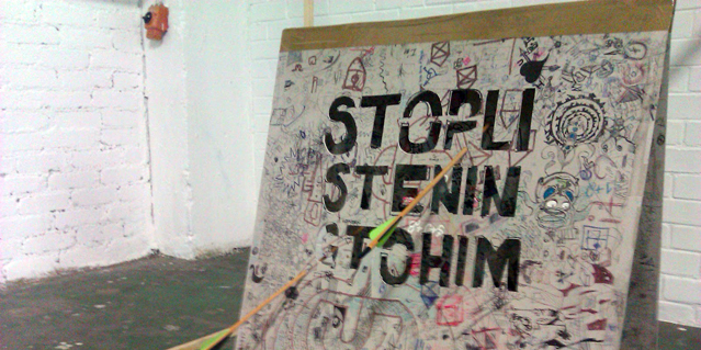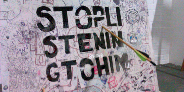 I was thinking about pope’s influence I consider as a human crime in matter of major public health concerns. The installation could be a big paperboard, or a patchwork of paperboards (what you can find on the streets which is not used for shelters) With the text STOPLISTENINGTOHIM cut close to you can see in the picture. You can hand is straight or diagonal, as you want.