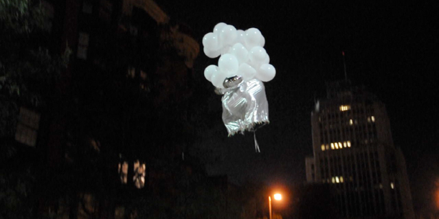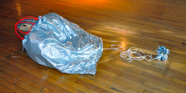 Artificial object meant to be intentionally placed into orbit. Like a time capsule, it carried messages for extraterrestrial intelligence. That happening was part of « Outerspace, The American Odyssey » artshow co-curated with Michelle Marie Murphy in august 2010.