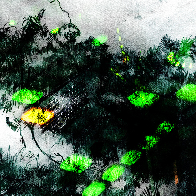 « Plunged in the dark and deep of an inner listening, guided by subconscious images that pass through the mind, Yann blindly put down on the paper the expressions of the canalised continually transmuting forms and views. Seeing neither the colour of the oil pastels he use, nor the progress of the drawing during its creation, he disconnect himself as much as he can, from control and aesthetic research of the developing image. Immersed in a repetitive live sound-mix-space constructed from samplings recorded in Argentina’s tropical forest and capital city, this half trans state he’s searching for, intensifies. Body expressions become more fluid as the gestures automate themselves. On the paper surface through super positioning, grouping and rupture, an organic set of marks develops into a remarkable visual language. »